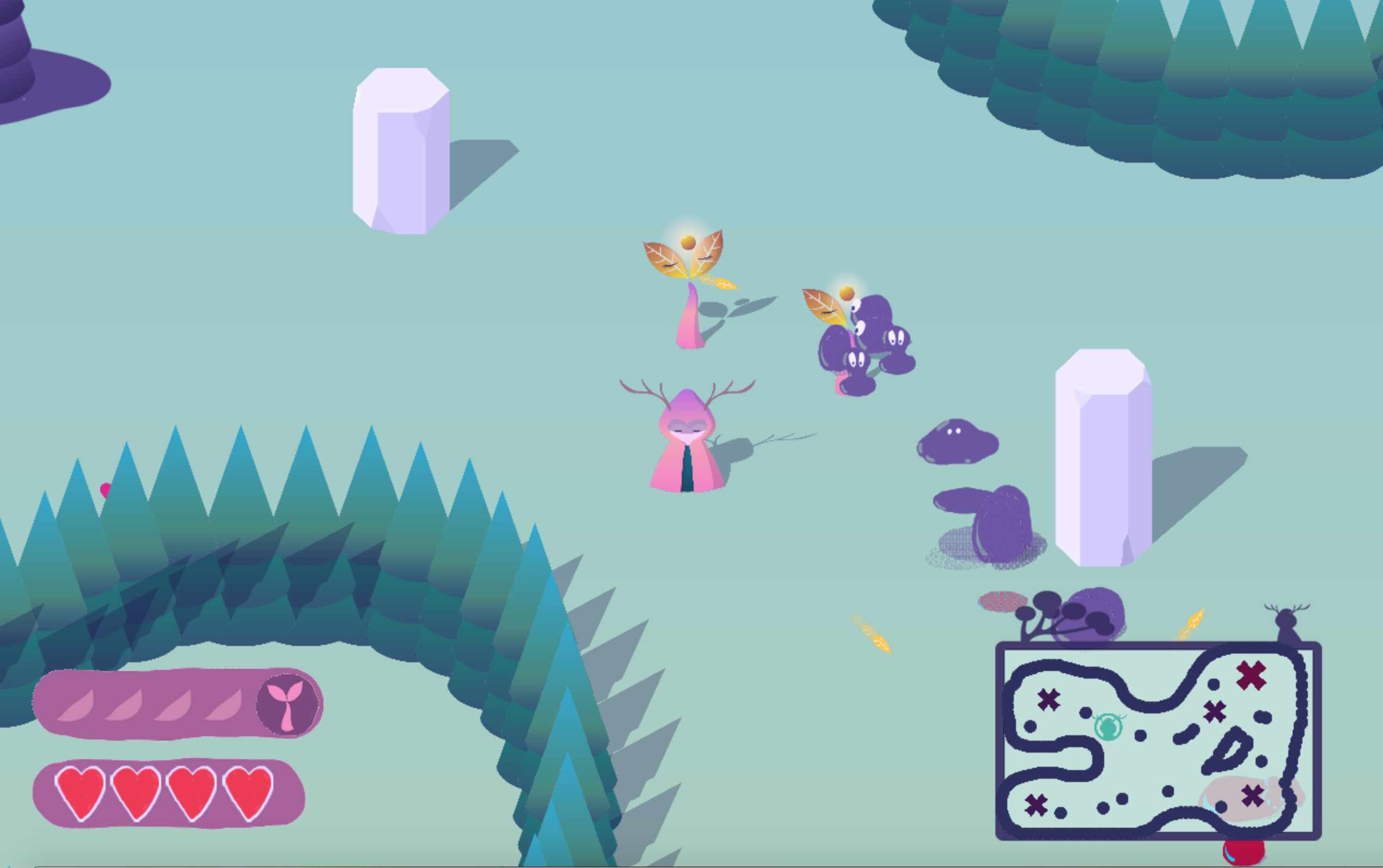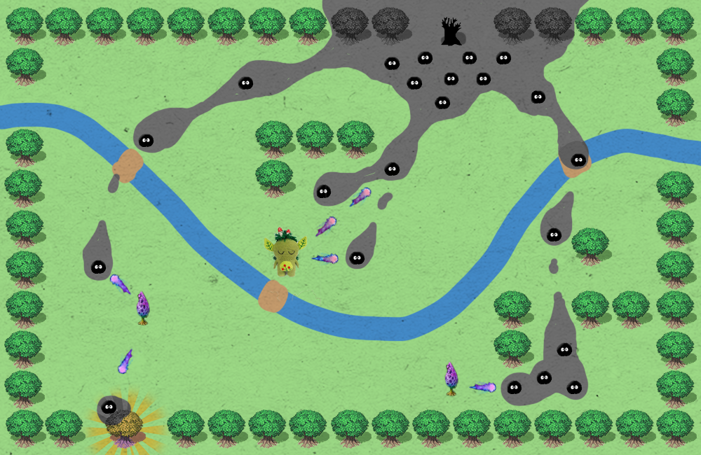 My role was as a designer was to create UI elements, animate sprites, and write promotional material for the game. I primarily used Photoshop to animate the sprites. Sprites that I had made and animated include the infected tree sprite and animation, the golden leaf drop sprite and animation, and UI elements such as the menu background and buttons.