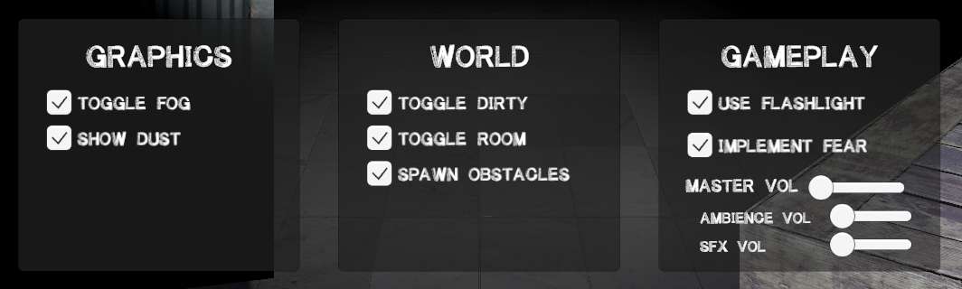 Escape the dark and creepy Hospital! Use the toggles in the “Options” menu to customize your horror experience, such as removing/adding obstacles, turning on/off room lights, and enabling/disabling fog. Make sure you’re in the dark, with headphones on, for the best experience.