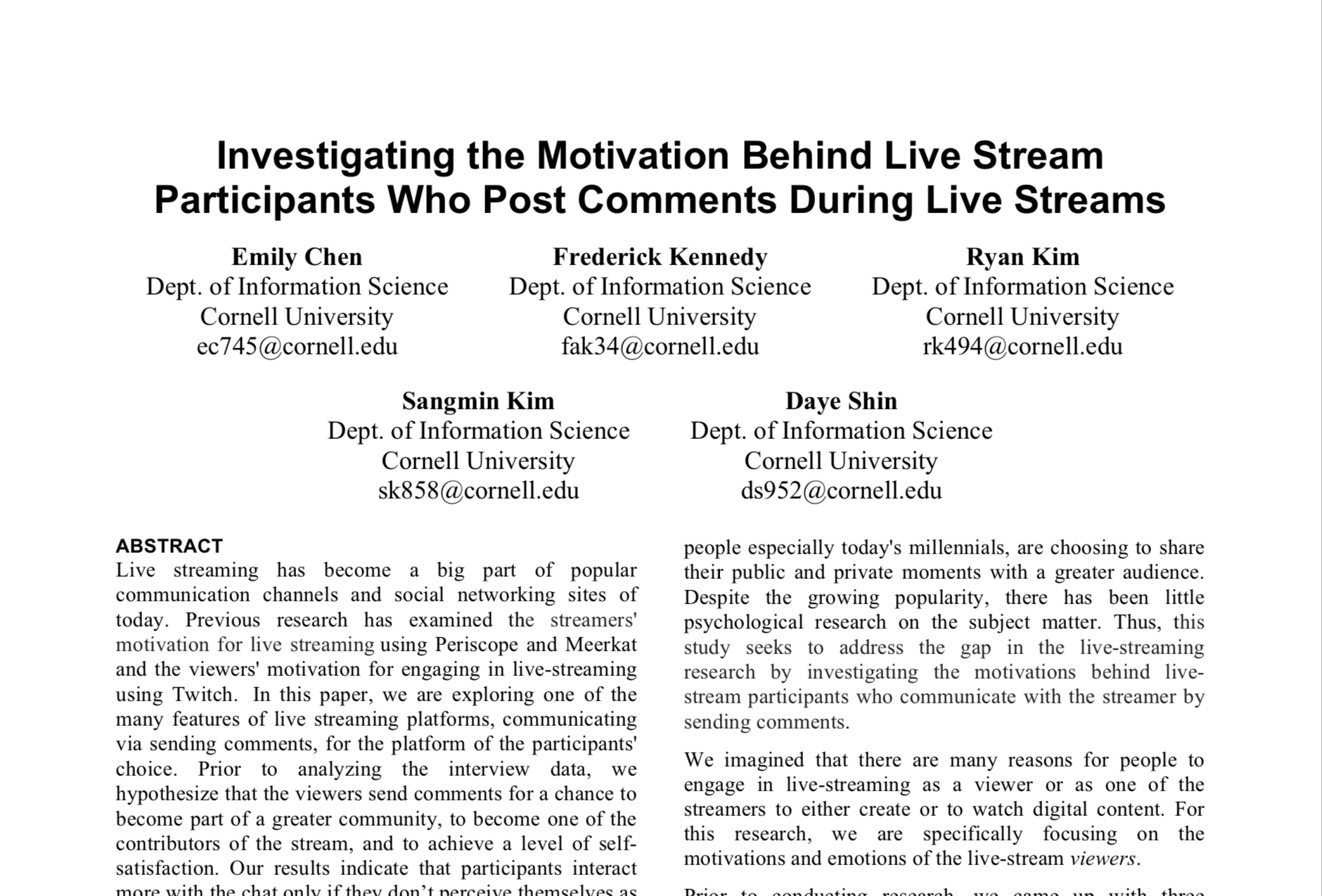 - Topics: Computer-Mediated Communication, Live Streaming, User Experience (UX)