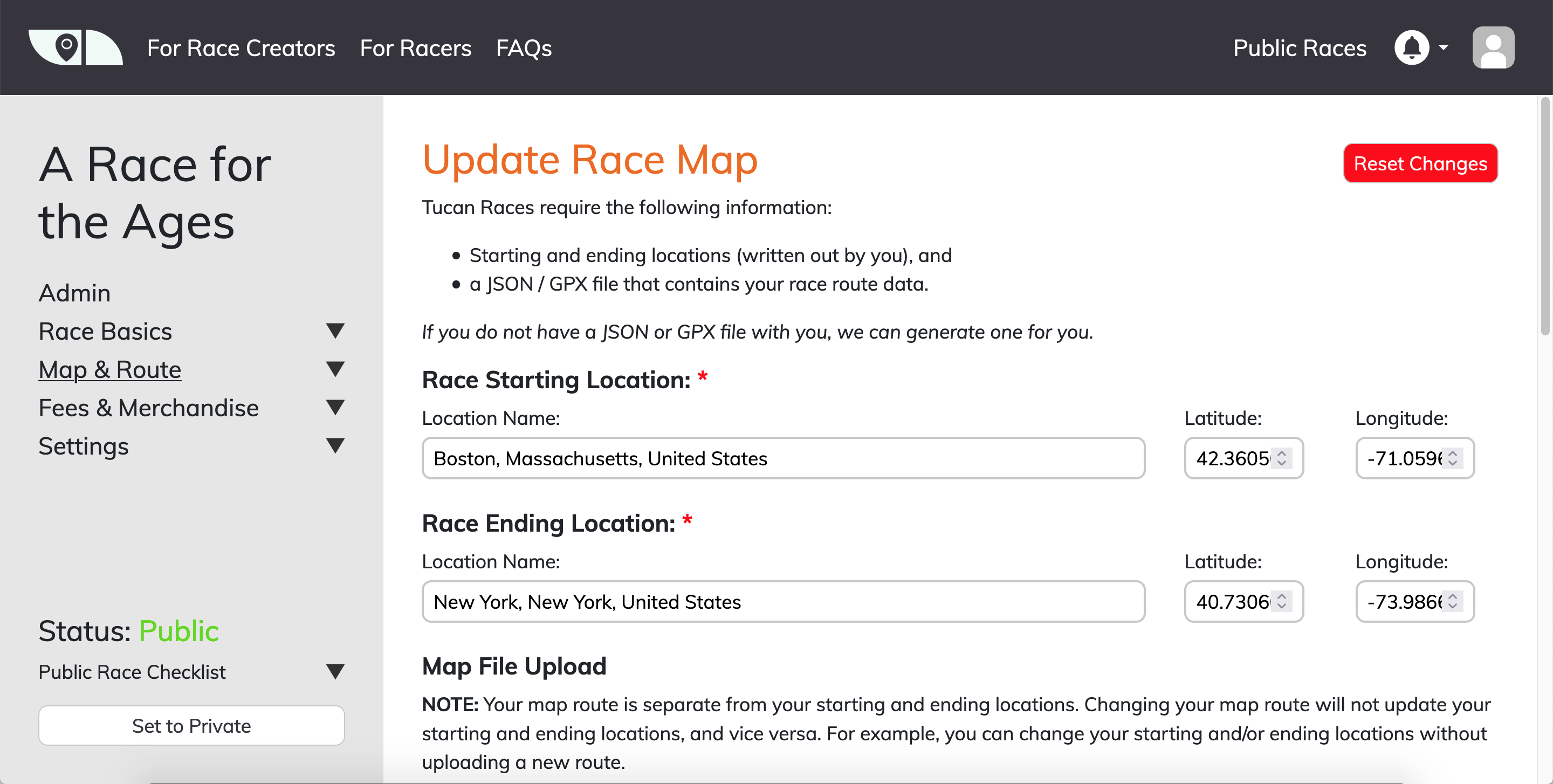 The insights gained from users, particularly race directors, from Stage 1 also fueled many of the functionalities we added in Stage 2. Our foresight in gathering user interviews from both racers and race directories enabled us to move quickly in code development, for we already had the personas and empathy maps needed to determine which features to add to the “Create Race” part of the web app.